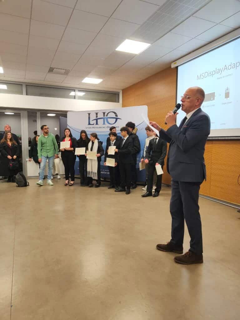 Autour d’eux, une grande partie de l’équipe éducative était présente pour célébrer cette réussite. Les professeurs ont tenu à féliciter chaleureusement leurs anciens élèves, et un moment particulièrement apprécié a été celui où leur ancien professeur principal leur a remis individuellement leur diplôme, juste avant la traditionnelle photo de groupe.
